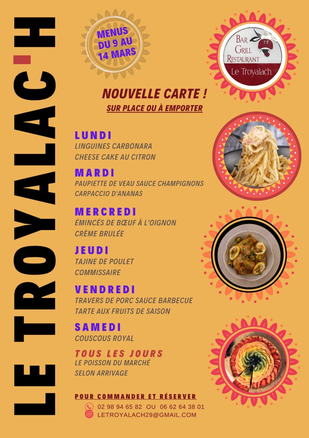 Le Troyalac’h vous invite à savourer une cuisine délicieuse et authentique chaque midi. En semaine, nous vous proposons une formule du jour préparée avec soin par nos talentueux cuisiniers. Ces passionnés mettent un point d’honneur à utiliser des ingrédients frais et des produits de qualité pour sublimer chaque plat et ravir vos papilles. Le samedi midi nous vos proposons des repas thématisés pour régaler toute la famille.